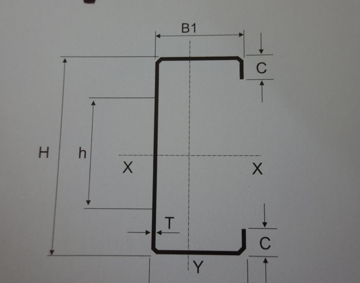 C beam: It is formed by cold bending and rolling of galvanized steel sheet. The cross-section resembles the English letter C, the thickness is 1.5-3.0mm, and the cross-section height is 75-250mm. It can be drilled, primed, electroplated, hot-dip galvanized, etc.