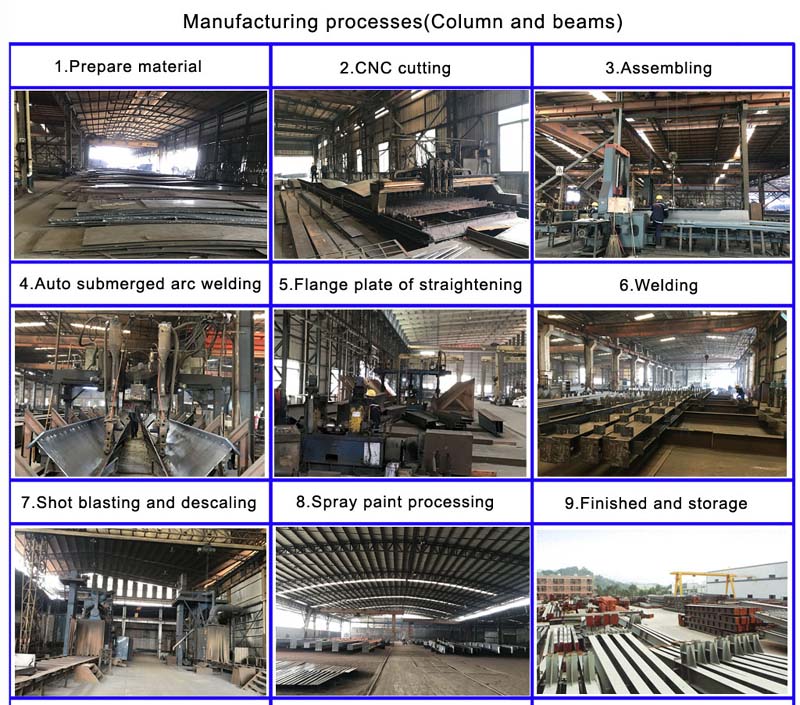 We are manufacture factory with more than 20 years rich experience in steel structure industry, covering an area of 160000 square meters. There are 5 light steel structure production lines and 2 heavy steel structure production lines, monthly production reaches 5000 tons.